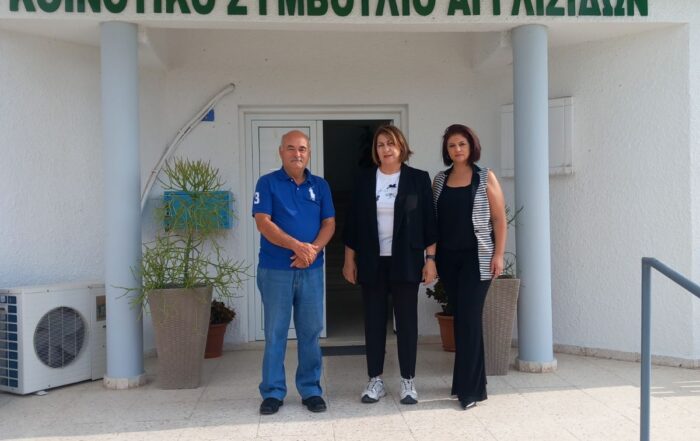 Σε συνέχεια των συναντήσεων με Δήμους και Κοινότητες είχαμε συνάντηση με την Πρόεδρο του Κοινοτικού Συμβουλίου Αγγλισίδων κ. Ελένη Σακκαδα. Το συμβούλιο έχει εντάξει και τις τρίτεκνες οικογένειες στις εκπτώσεις που παρέχονται στα Δημοτικά τέλη.
