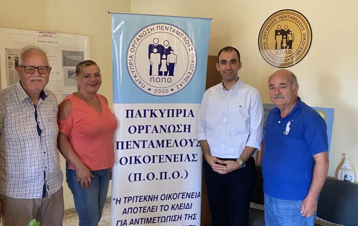 Την Τετάρτη, 8 Οκτωβρίου 2025, πραγματοποιήθηκε συνάντηση, μεταξύ του Προέδρου της Παγκύπριας Οργάνωσης Πενταμελούς Οικογένειας (Π.Ο.Π.Ο.) κ. Αντώνη Χατζηαντώνη, του Αναπληρωτή Προέδρου κ. Χαράλαμπου Ηρακλείδη και του Γενικού Ταμία Χάρη Γεωργίου με μέλη του κόμματος [...]